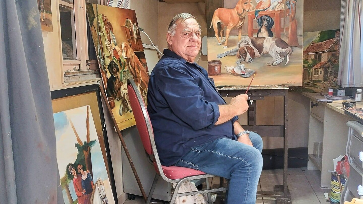 Na zijn pensionering heeft oud-cateraar Jan de Weerd zijn grote passie weer opgepakt: schilderen. Achter zijn woning aan de Bloemstraat in het Hangerad heeft hij zijn eigen creatieve domein ingericht — een nostalgische pipowagen waar hij vele uren doorbrengt met penseel en verf.