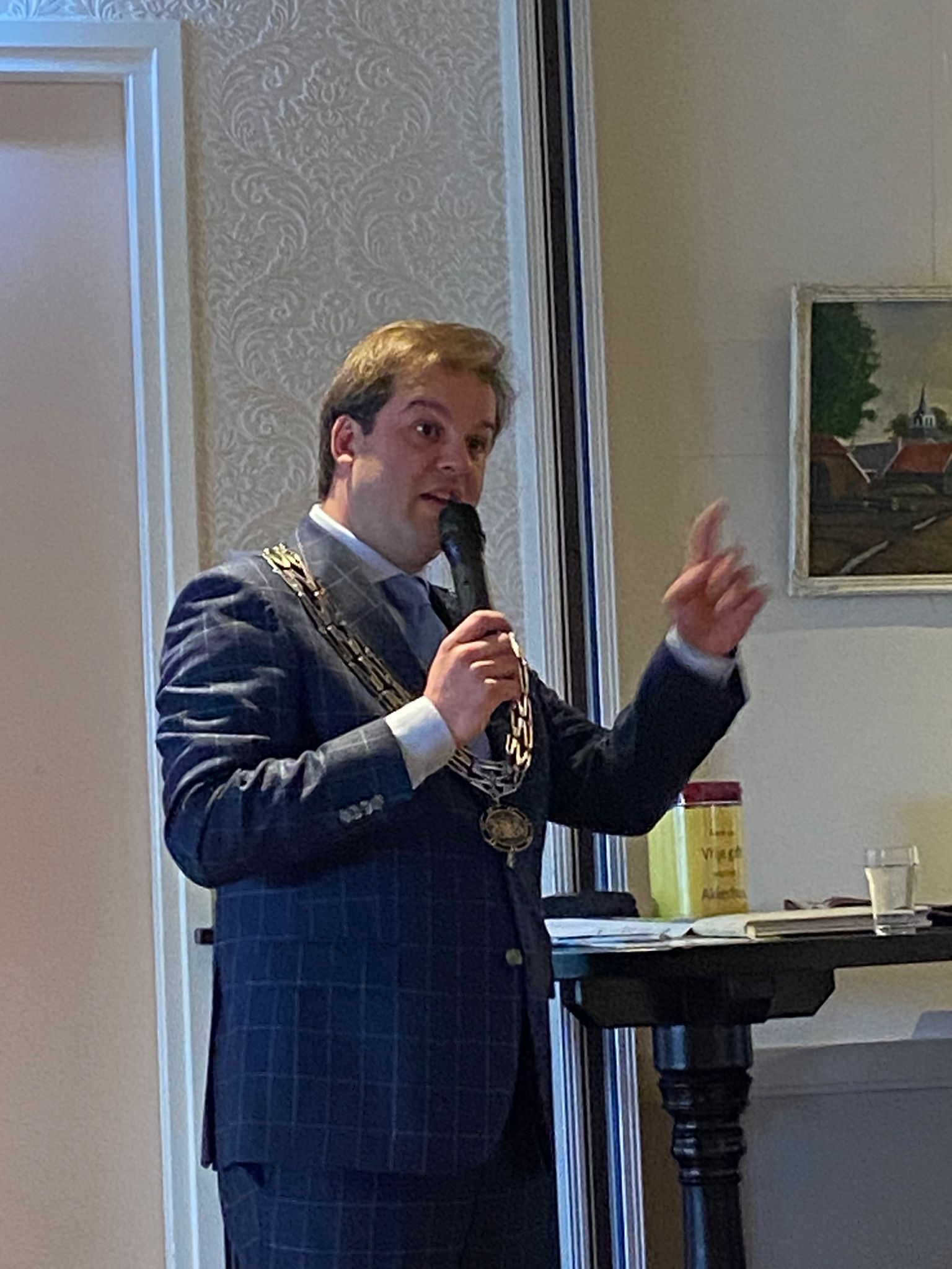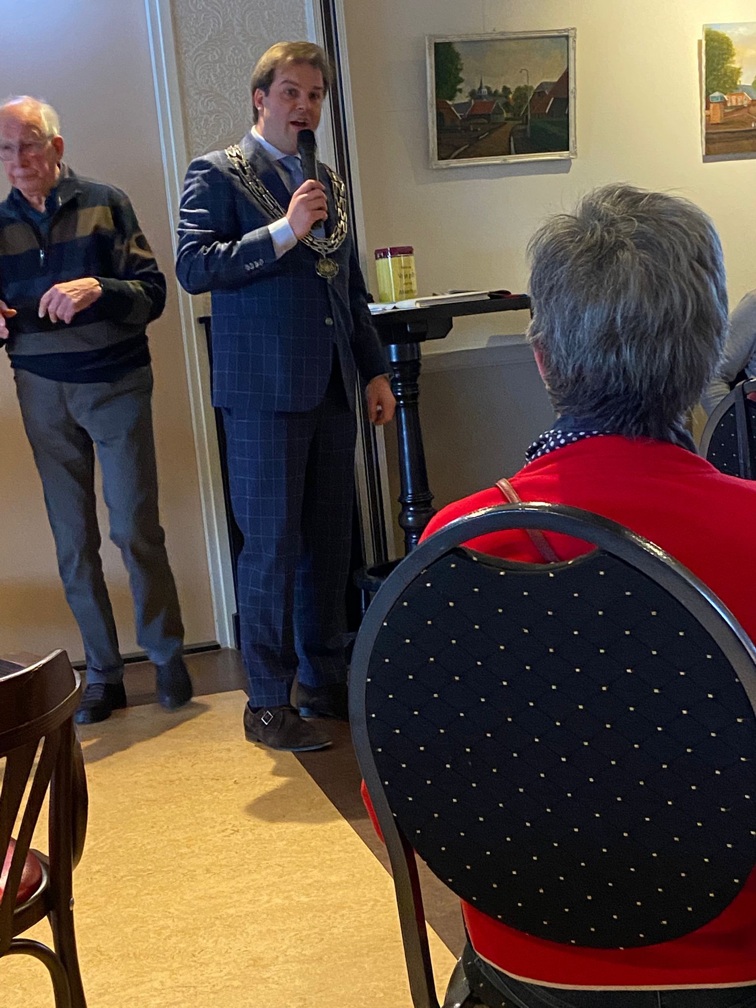 Hij werd hartelijk welkom geheten door Volkert Boertjes die hem een kleine uitleg gaf wat ons Akkerhus zoal doet.